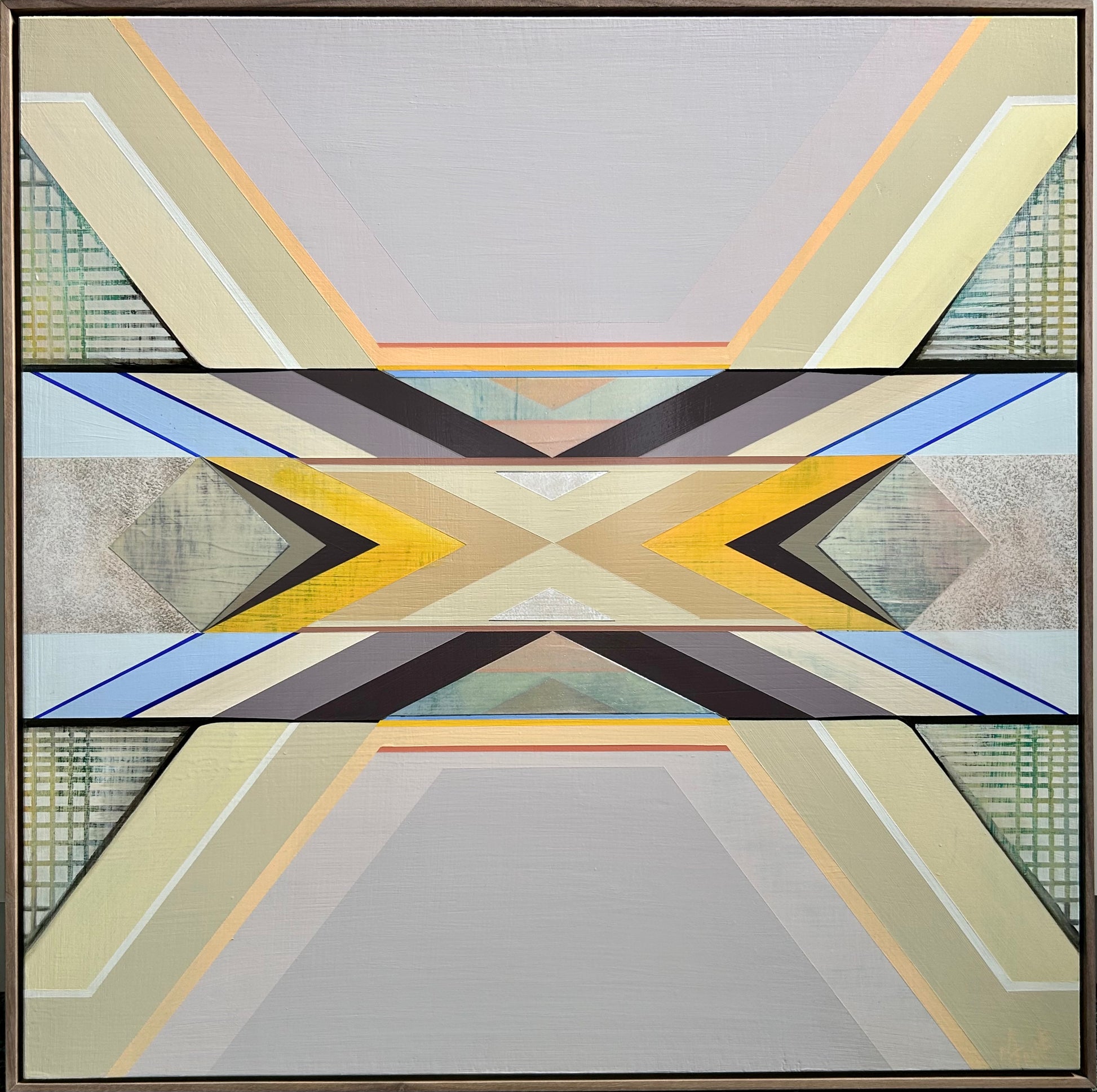 The subtle contrast of colors reminiscent of a desert morning glow. The early bird gets to see the glow. Earthy texture compliments the reductive shapes and elevates it to a modern place. Acrylic mediums create a push and pull that is intriguing to view.